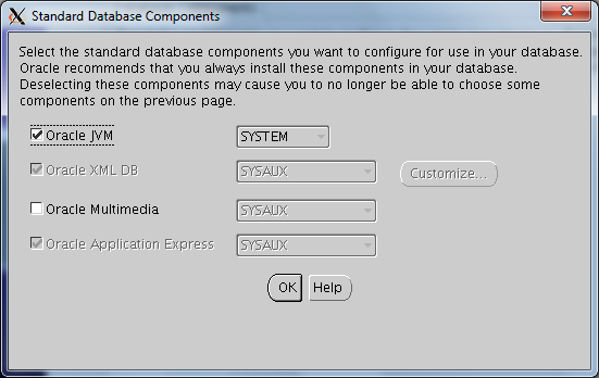 Verify that ‘JServer JAVA Virtual Machine’ is present and VALID in the database instance: