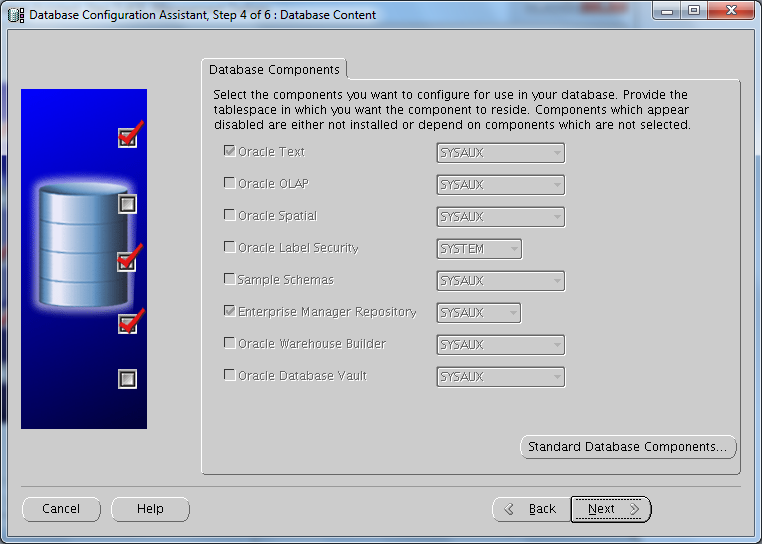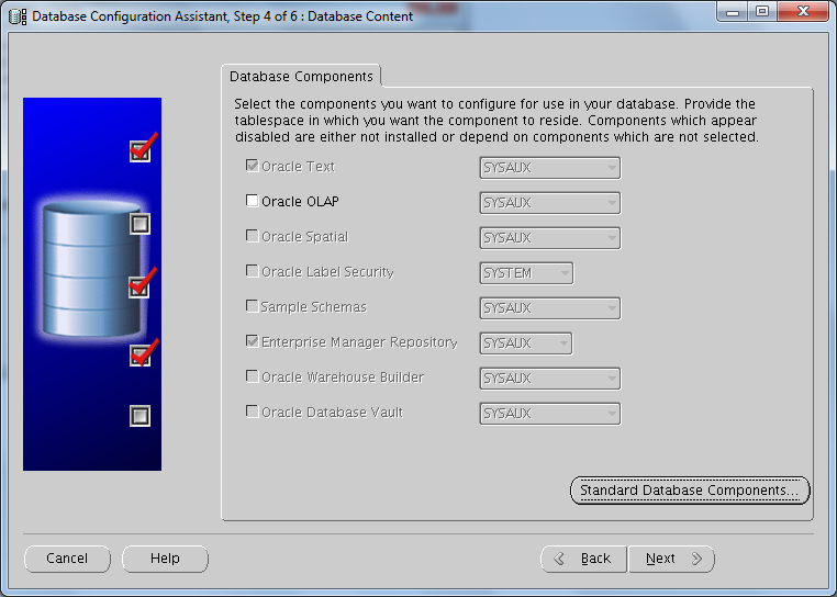 To determine if OLAP is installed or not just run DBCA(located in $ORACLE_HOME/bin). Choose “Configure Database Options”,press Next>> 3 times and if you see this, which means OLAP is not installed
