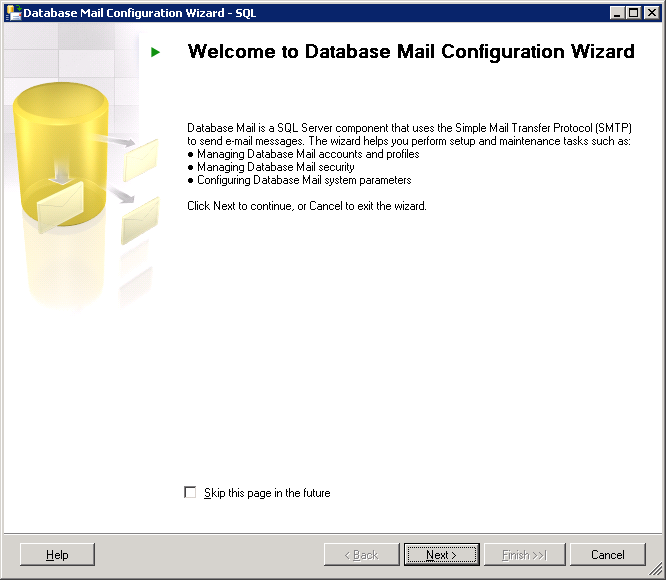 sp_configure 'show advanced options', 1; GO RECONFIGURE; GO sp_configure 'Database Mail XPs', 1; GO RECONFIGURE GO sp_configure 'show advanced options', 0; GO RECONFIGURE; GO