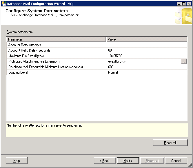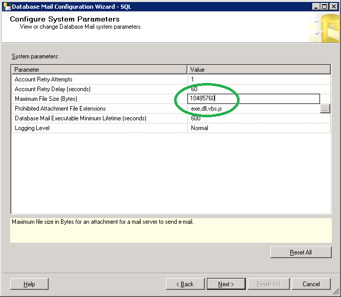 4. Increase the mail size limit from Database Mail. You can do it during setting up the account but I prefer to discuss it separately.
