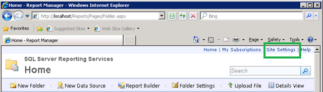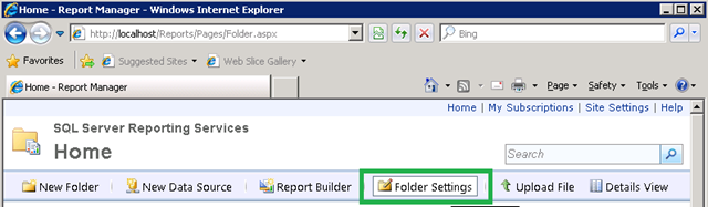 2. Go to the Reporting Services address: http://localhost/Reports
