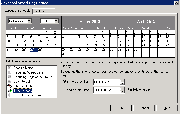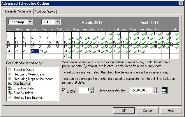 For example if you want your backup to run everyday at 1:00AM and no later than 11:00AM, click Day Interval –> check Every and write 1
