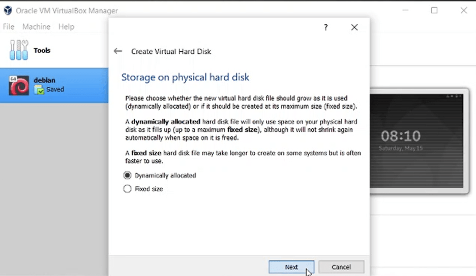 6. Select Dynamically allocated if you don’t want take hard disk space immediately