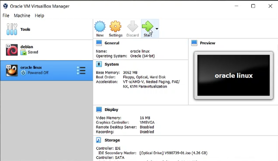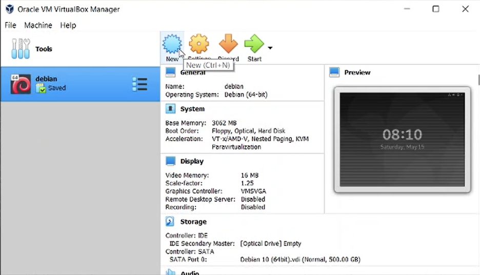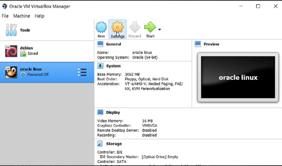 8. Virtual machine is already is created. Before we open/start VM, we load iso file in the machne, click Settings and follow me