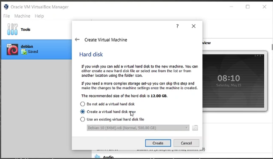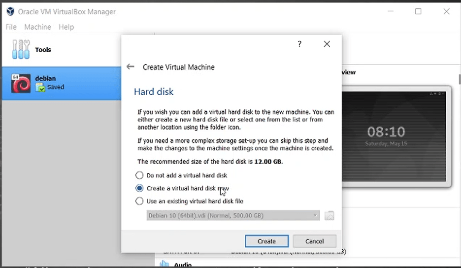 4. Now, Select Create a virtual hard disk now option and click Create button