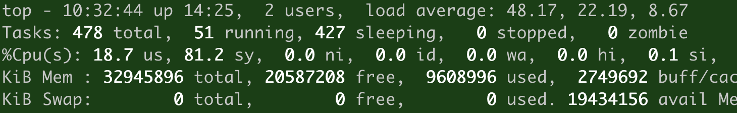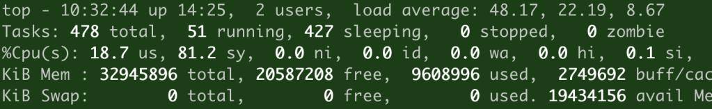 From another terminal tab, run top command to monitor %sy usage (81.2%) :