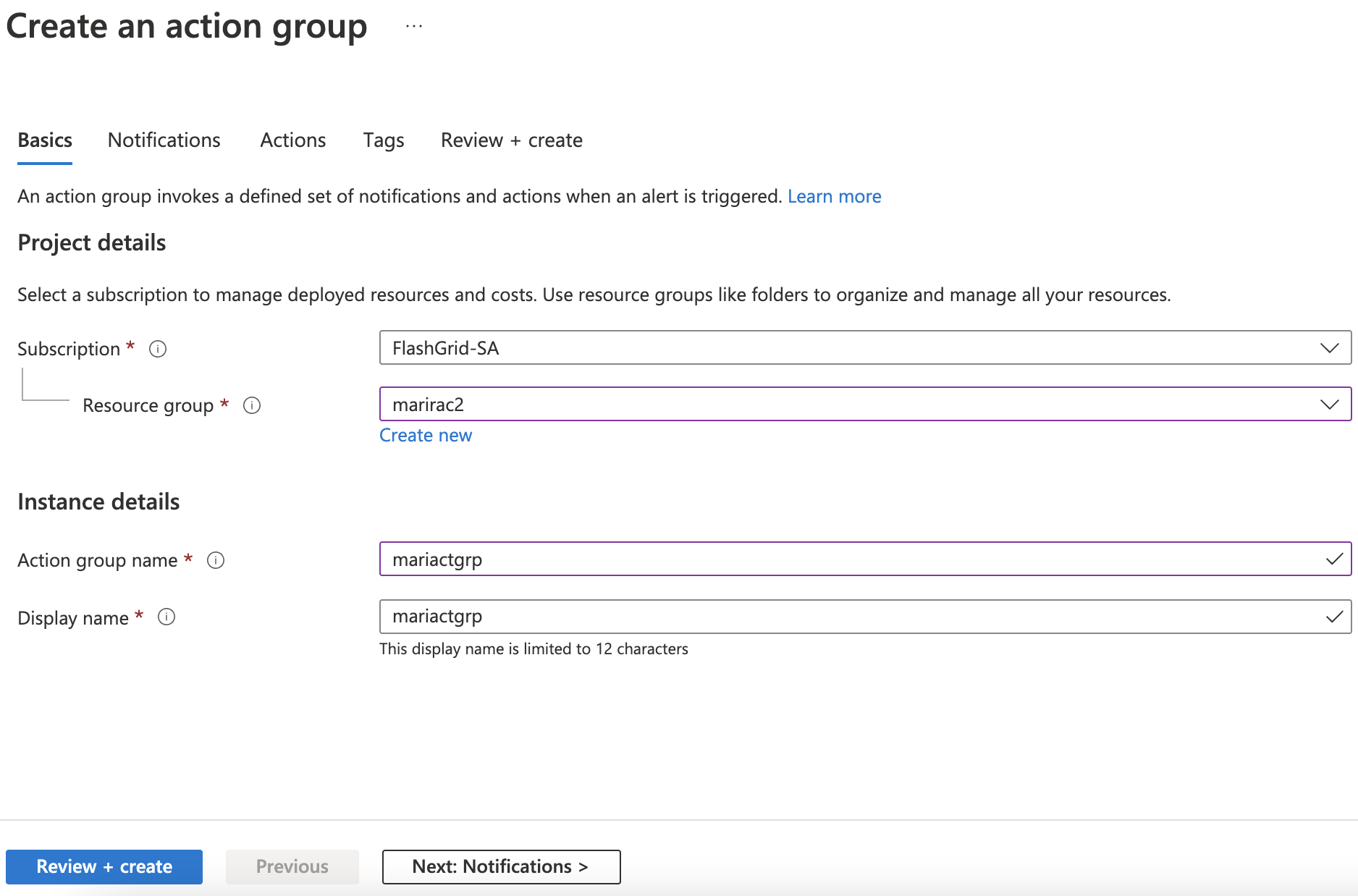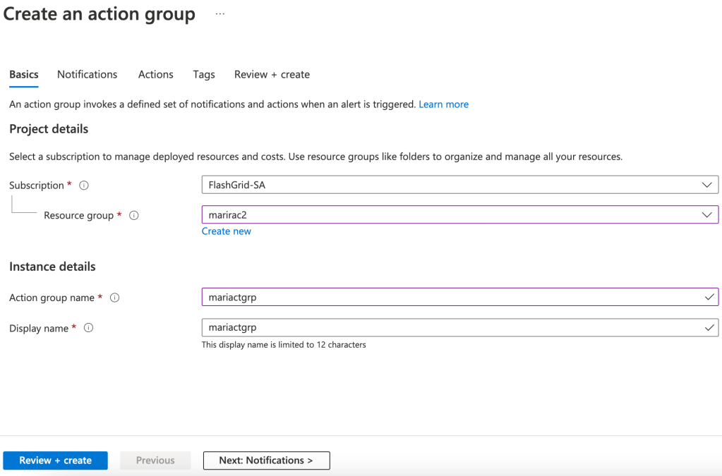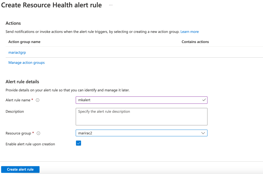 3. Go to the Resource Group (in my case marirac2) where you have created Action Group.
