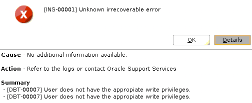 # chmod 750 $ORACLE_BASE/cfgtoollogs/dbca
