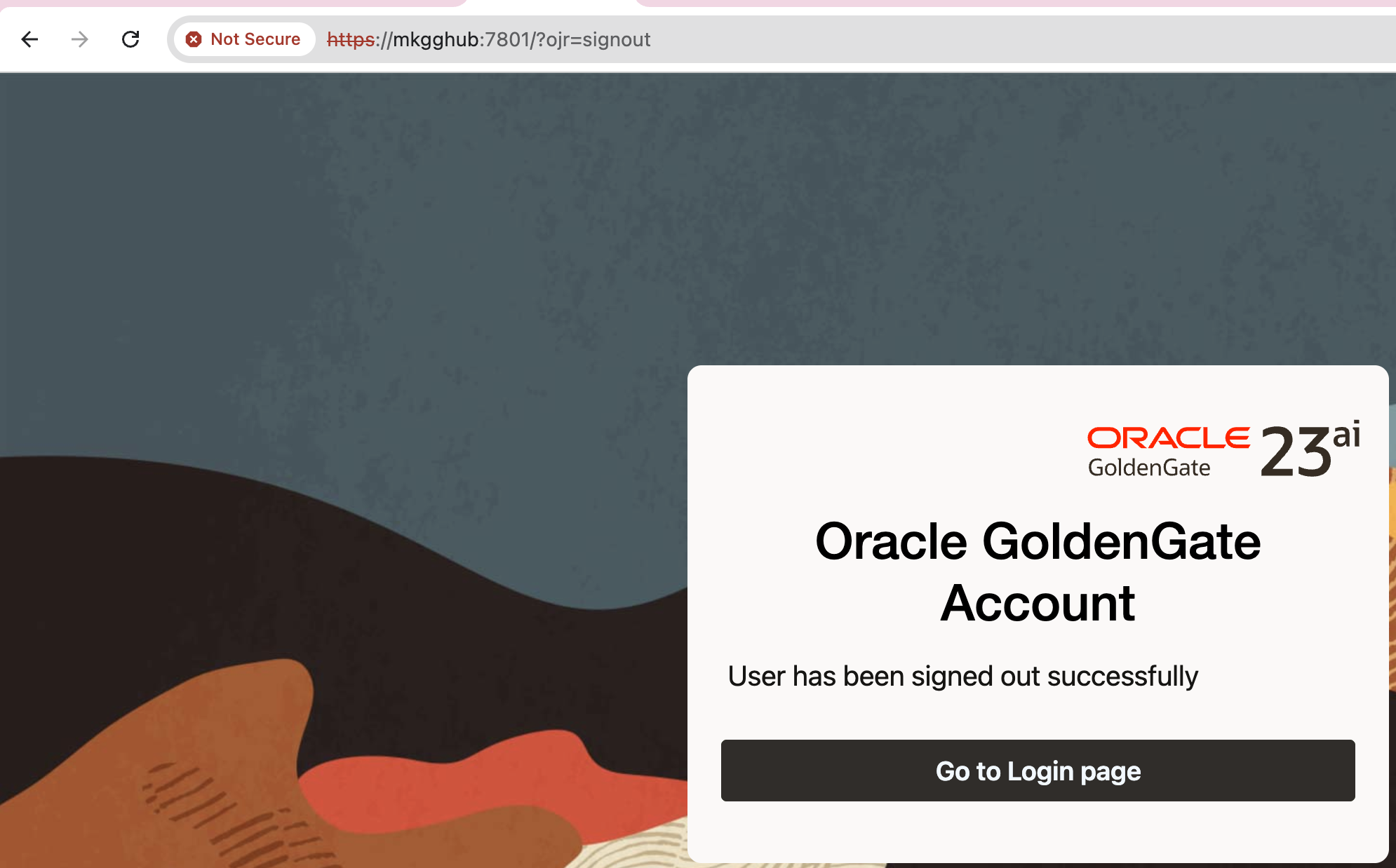 Chrome shows “Not Secure” for my test Golden Gate 23ai setup, where I decided to use a self-signed certificate: